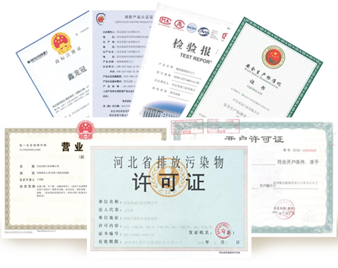 各项检测报告、安全生产标准化证书、科技型中小企业证书等